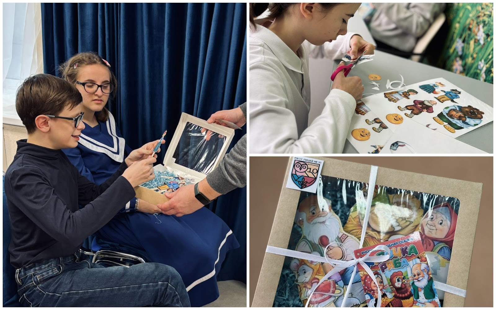 Волонтёры и активисты Лицея № 10, под руководством советника директора по воспитанию и взаимодействию с детскими общественными объединениями Зайцевой Анны Викторовны, своими руками сделали подарки для наших подопечных ребят, в виде театра на палочках. Вручение подарков прошло на занятии в нашей Инклюзивной творческой студии, где ребята импровизировали и веселились, играя сказку по ролям) Спасибо большое за такой теплый подарок! Приходите к нам ещё)