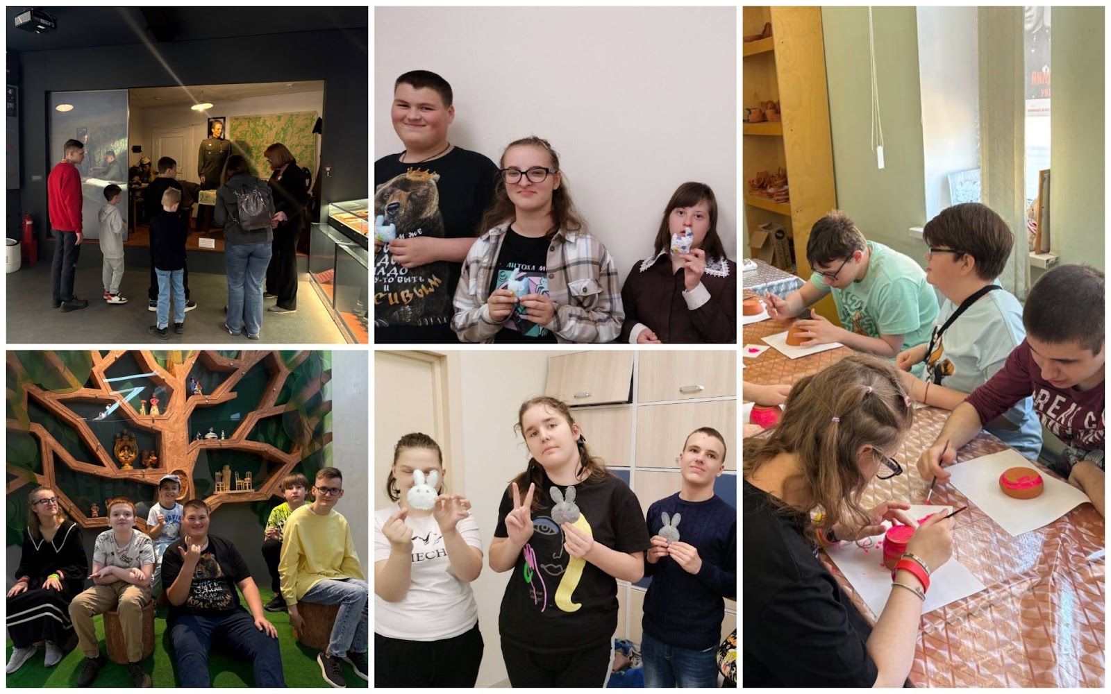 В швейной мастерской были котики и зайчики — не мудрено, Пасха ведь) А на культурно-досуговых мероприятиях ребята ходили в музеи, делали глиняные горшочки и просто приятно проводили время, общаясь с друзьями: