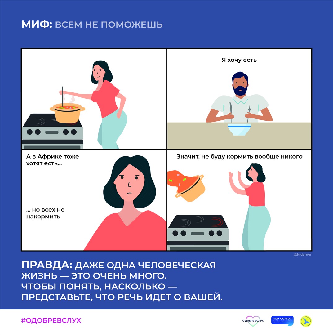 #ОДобреВслух – это социальный проект, в котором мы хотим рассказать, что делать добро под силу каждому. Мы расскажем, что такое благотворительность, зачем люди ей занимаются, а также постараемся развеять мифы о благотворительности. В рамках проекта проводятся блиц-интервью о благотворительности с медийными личностями, а также целая серия постов, посвященная развеиванию мифов о благотворительности.