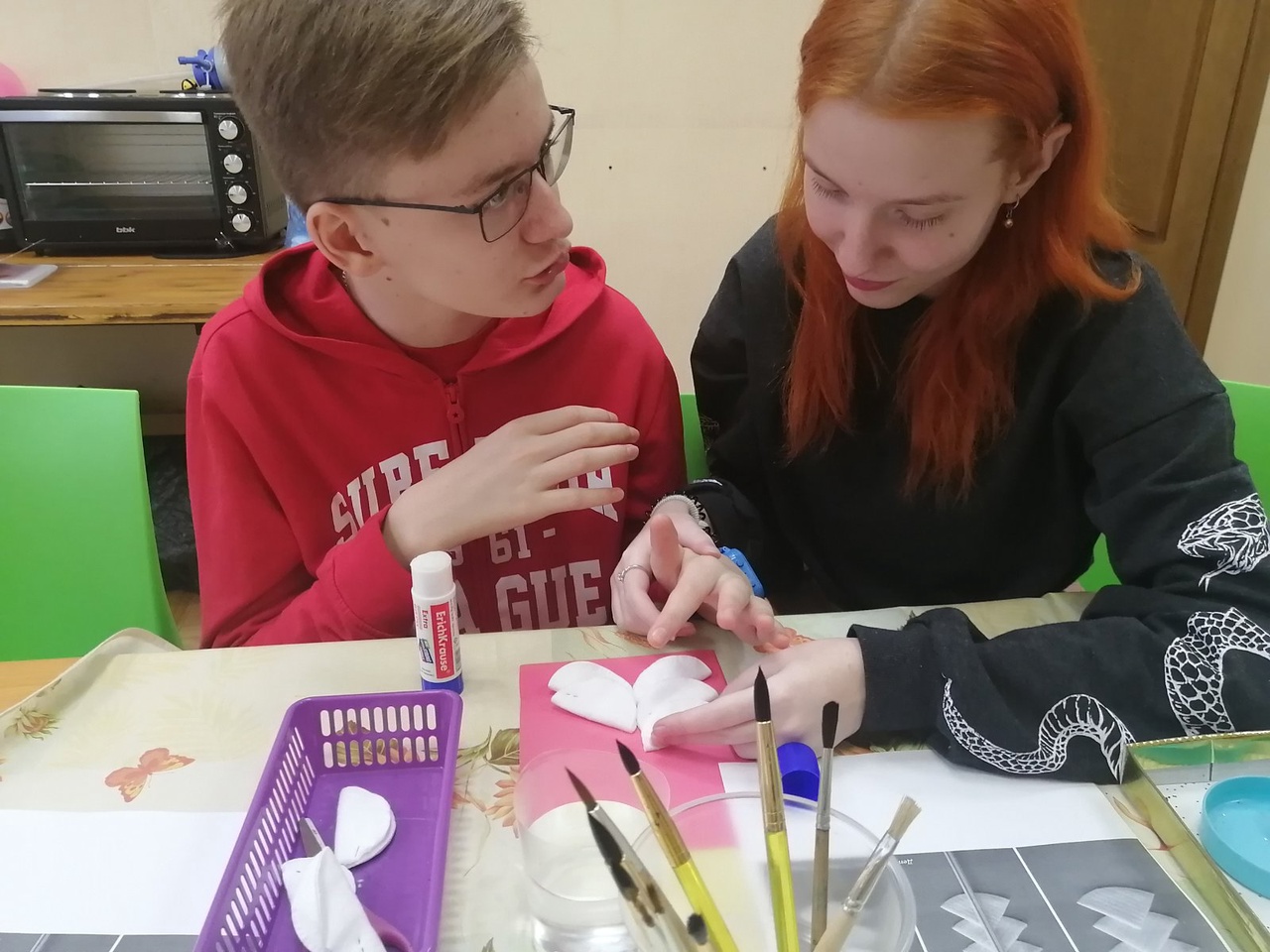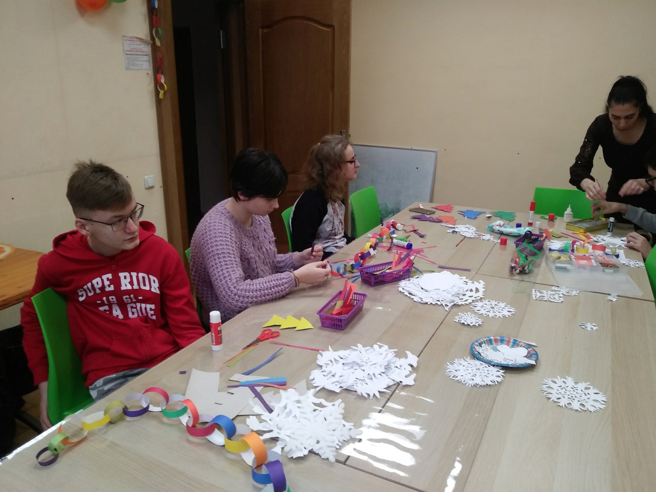 К стандартным занятиям в штатном режиме добавились дополнительные репетиции, кто-то оставался после занятия «довести до ума» работу для выставки. А все потому, что мы готовились к новогоднему представлению. О нем немножечко позже. А в общем — всё стабильно: танцоры — танцевали, музыканты — играли и пели, спортсмены наши продолжали заниматься адаптивной физкультурой, продолжались занятия с лопедом, ребята по декоративно-прикладному творчеству и изобразительному искусству готовились к новому году и выставке.