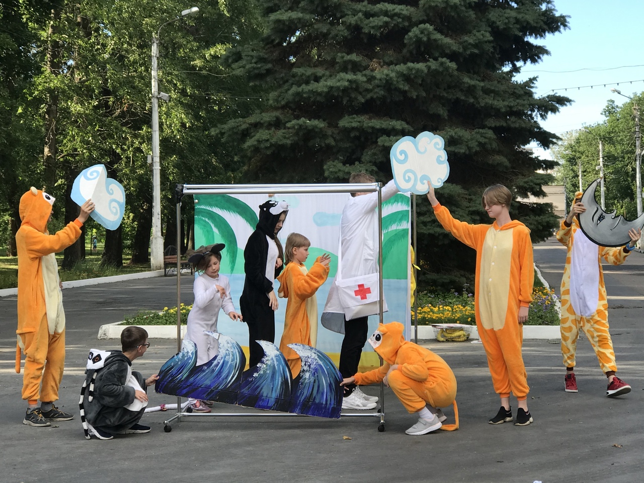 Также 14 июня случилась премьера нашей театральной студии. Они дали уличное представление «Айболит, Бармалей и рок-н-ролл» а 30 июня повторили представление еще раз, чтобы как можно больше людей смогли его увидеть. Мы планируем и дальше показывать его, пока на улице тепло. Так что подписывайтесь на наши группы в соц.сетях и следите за новостями, чтобы не пропустить все самое интересно!
