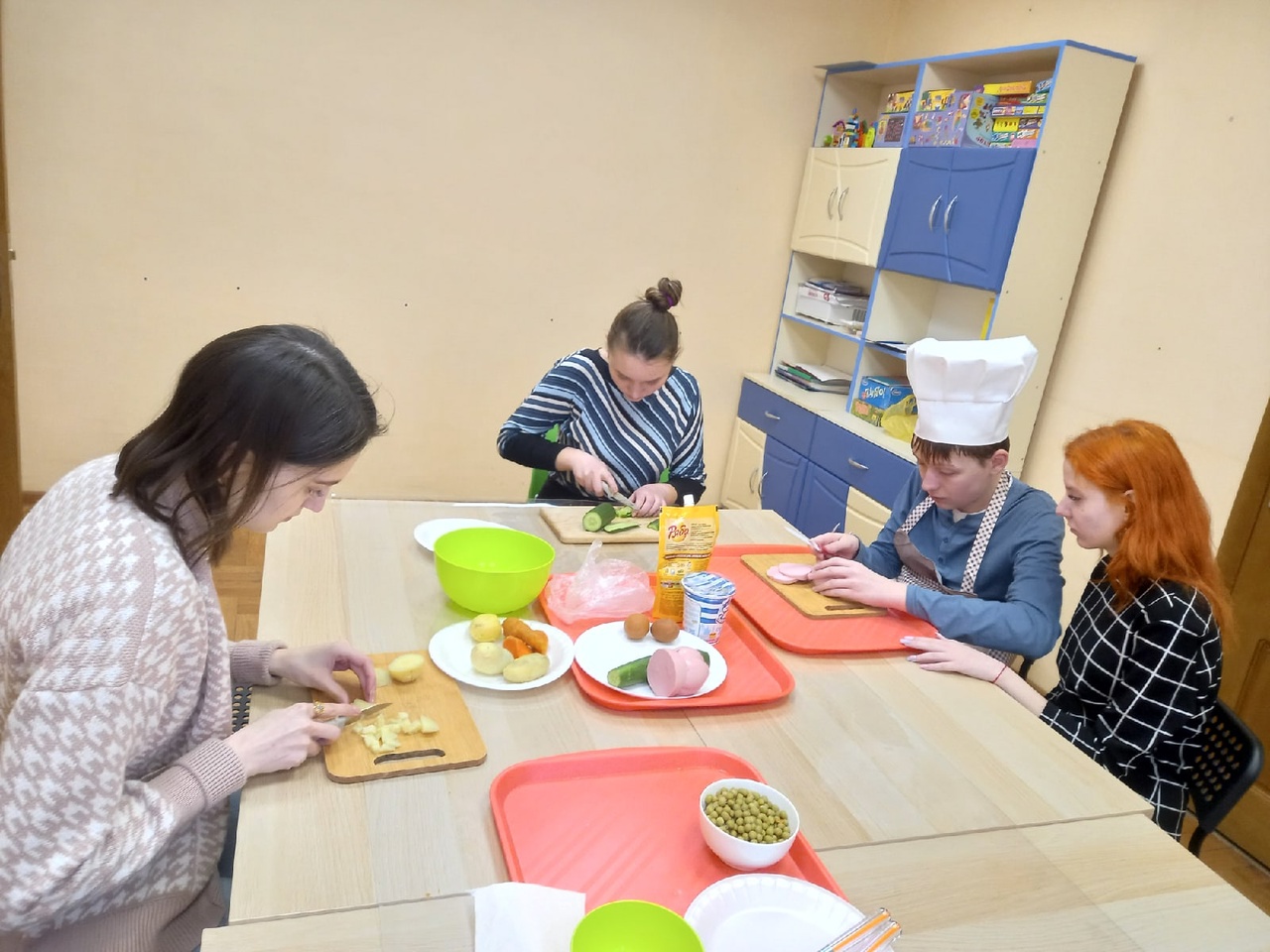 Кипит работа и в нашем центре социкокультурной адаптации для подростков ProДело. На занятиях социально-бытовым ориентированием за этот месяц, наши ребята, научились готовить оливье, рулет из лаваша, сырники, картофельную запеканку с сосисками и жарить гренки, закрепляя практический навык приготовления. Ребята совместно с наставниками-волонтерами, учились шить игольницу в виде сердца и убирать помещение, закрепляя и развивая трудовые и практические навыки, самостоятельность, умения контролировать свои действия. С интересом, посмотрели мультфильм, сопереживая герою. Участвовали в дискотеке, развивая и осваивая практические и двигательные навыки под музыку.