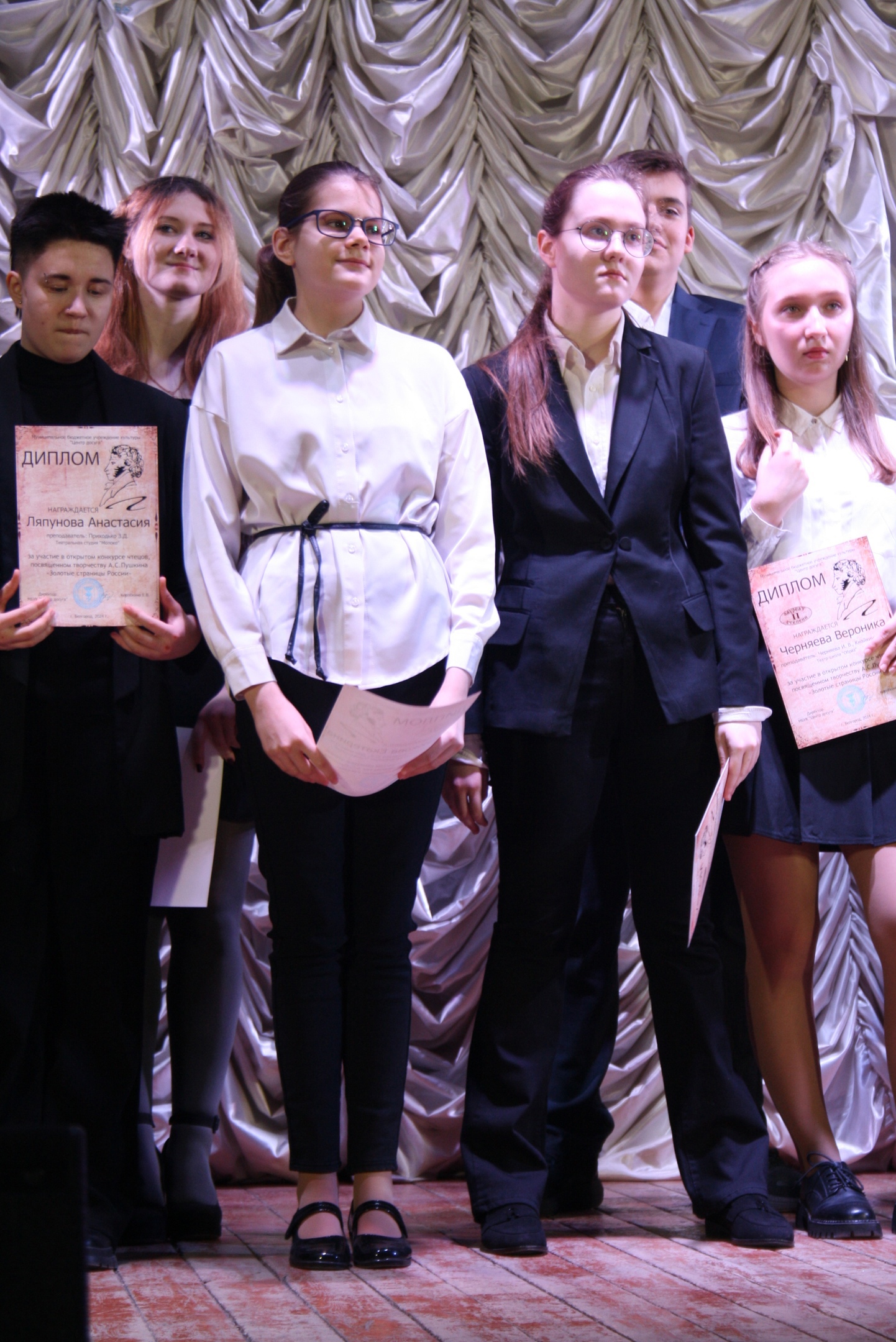 И кстати, наши юные артисты приняли участие в ежегодном конкурсе чтецов и рисунков, посвященном творчеству А.С. Пушкина «Золотые страницы России». Все трое участников заняли призовые места! Поздравляем Катю Севрюкову, Сашу Функа и Владу Алешину, вы большие молодцы!