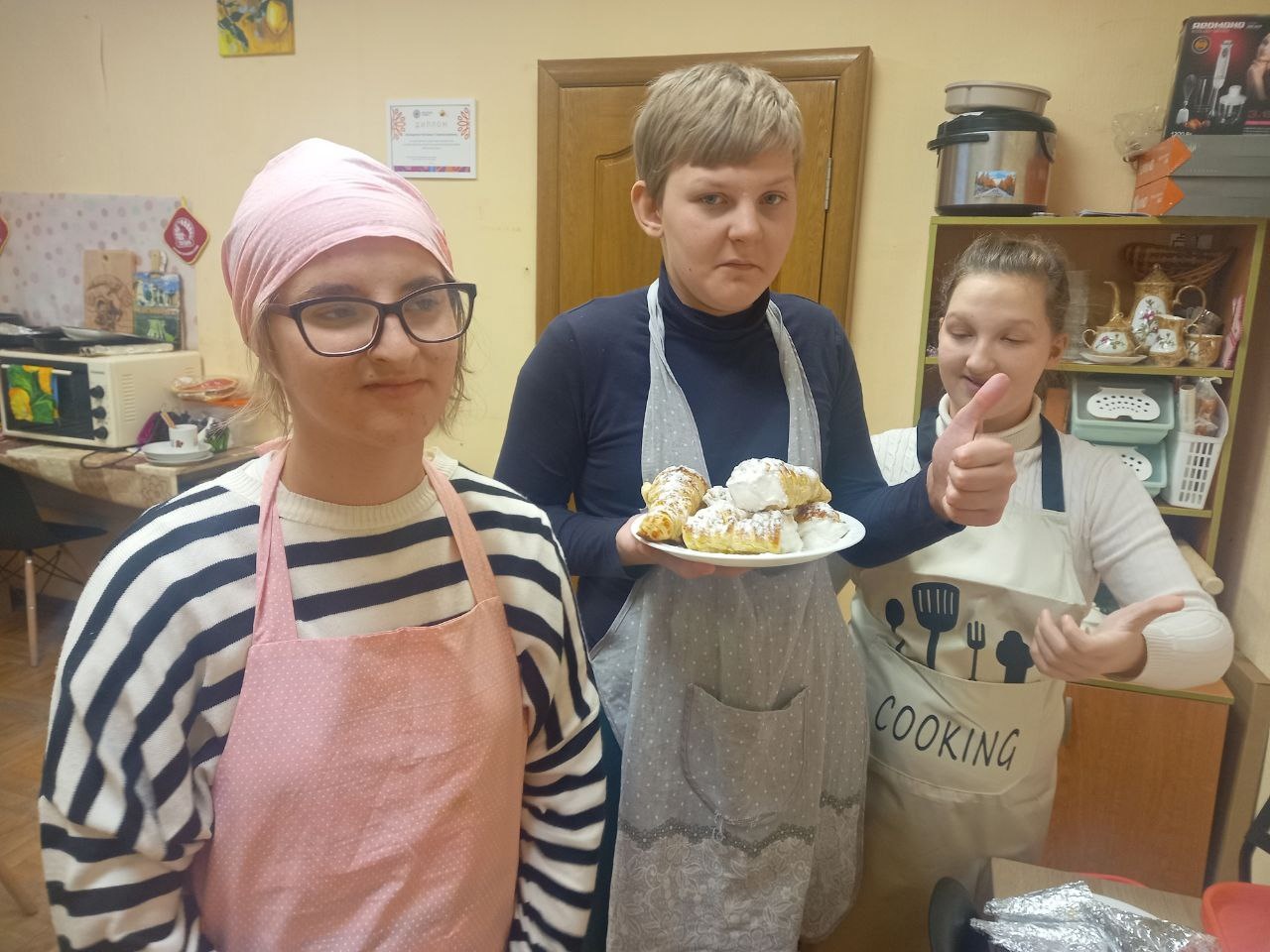 Также продолжалась работа в кулинарной, швейной и сувенирной мастерских. Ребята улучшают свои навыки работы с продуктами, кухонной утварью, швейными принадлежностями, кройки и шиться, а также работы с фанерными сувенирами. Здорово, что у ребят есть возможность заниматься любимым делом.