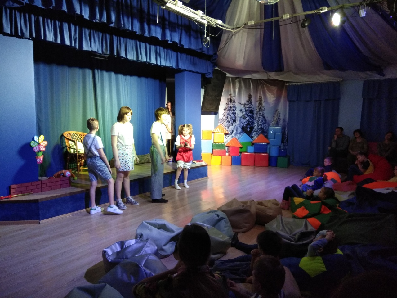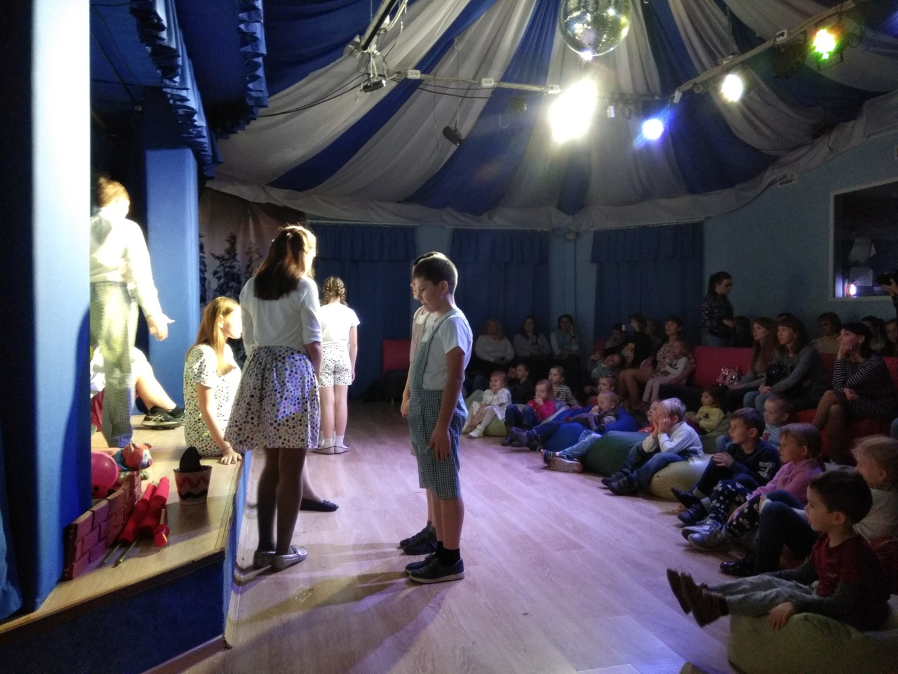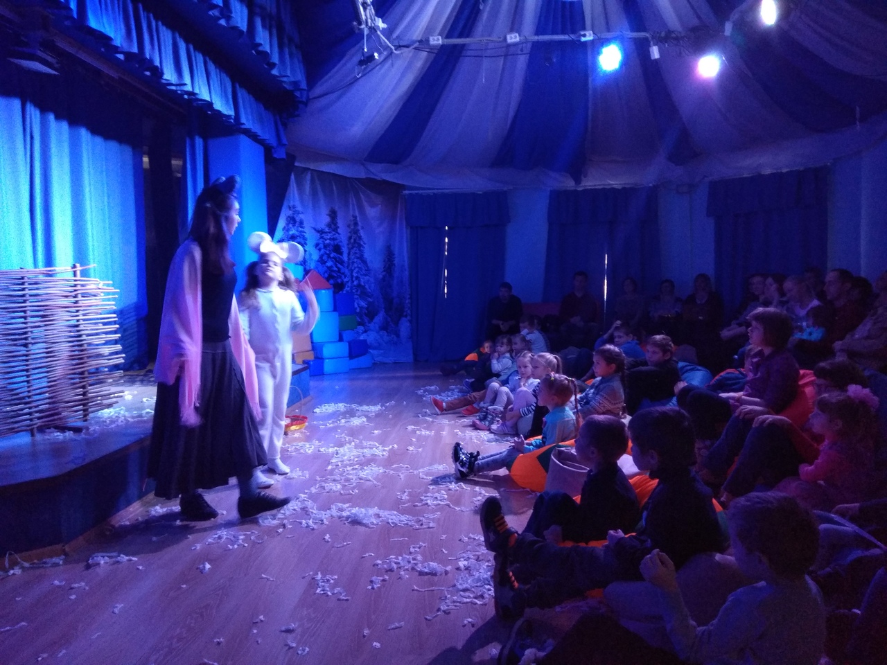 А еще в ноябре мы достали наши костюмы мышат и кота, что бы снова показать наш первый спектакль «Приключения белой мышки» и поняли, что эти два показа — последние. Костюмы трещат на ребятах. Вот ведь как выросли за пол года! В общем, мы показали. И удивились тому, насколько «Мышка» проще «Муры» и как ребята выросли в сценическом мастерстве. Большие молодцы!