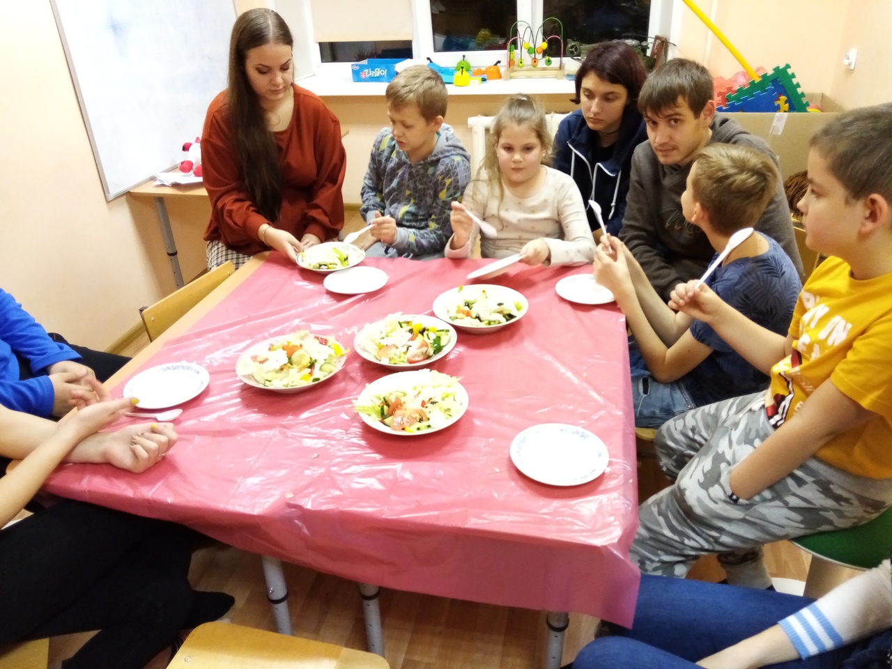 Все занятия проходят по расписанию. Ребята уже втянулись в режим после летних каникул (кто уезжал) и уже полегче. Вспомнили старое, осваиваем новое. Начала работать группа взаимодействия на основе театральных тренингов для ребят 5-6 лет. Втягиваемся по-тихоньку. На новом месте уже обжились, все замечательно 🙂