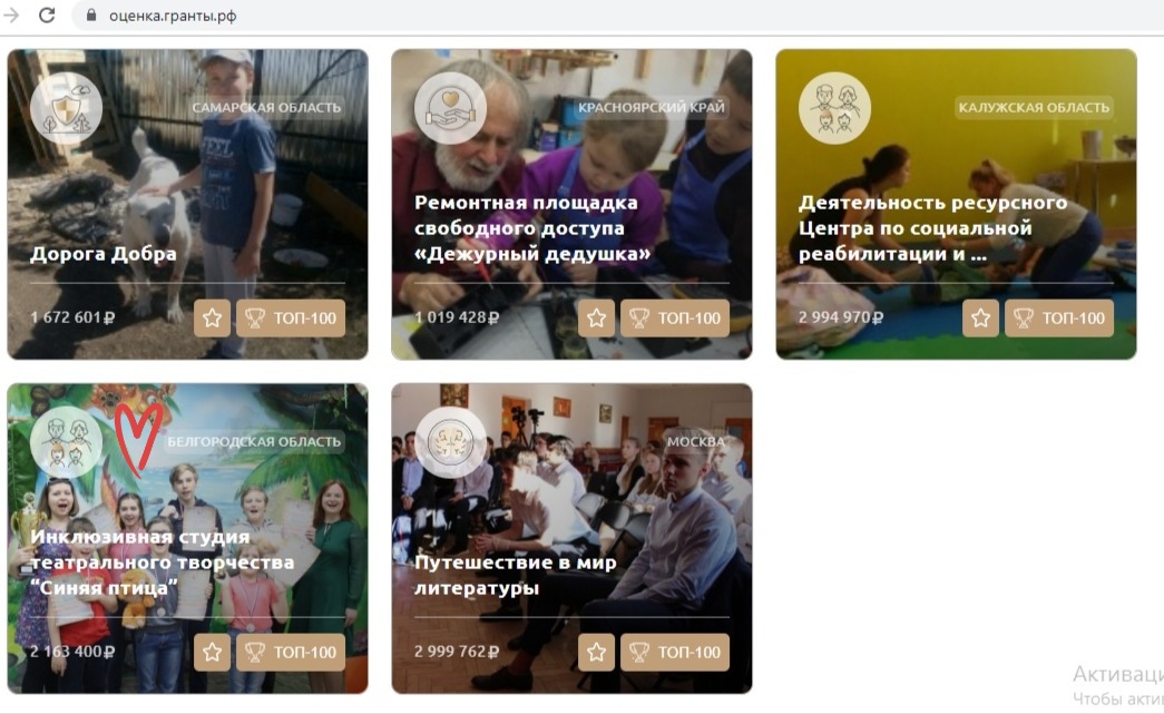 Ну а хорошая новость в том, что наш проект "Инклюзивной студии театрального творчества "Синяя птица", который мы реализовали в 2017-2018 гг. также при поддержке ФПГ вошел в топ-100 лучший проектов 2017 года. Это большое признание для нас, подтверждение того, что наша работа не только нужна, но и может быть полезна в других регионах. Кстати, проект действует и по сей день и в планах расширить его до....об этом скажем позже. Ну а пока, закатали рукова и покорять новые вершины :)