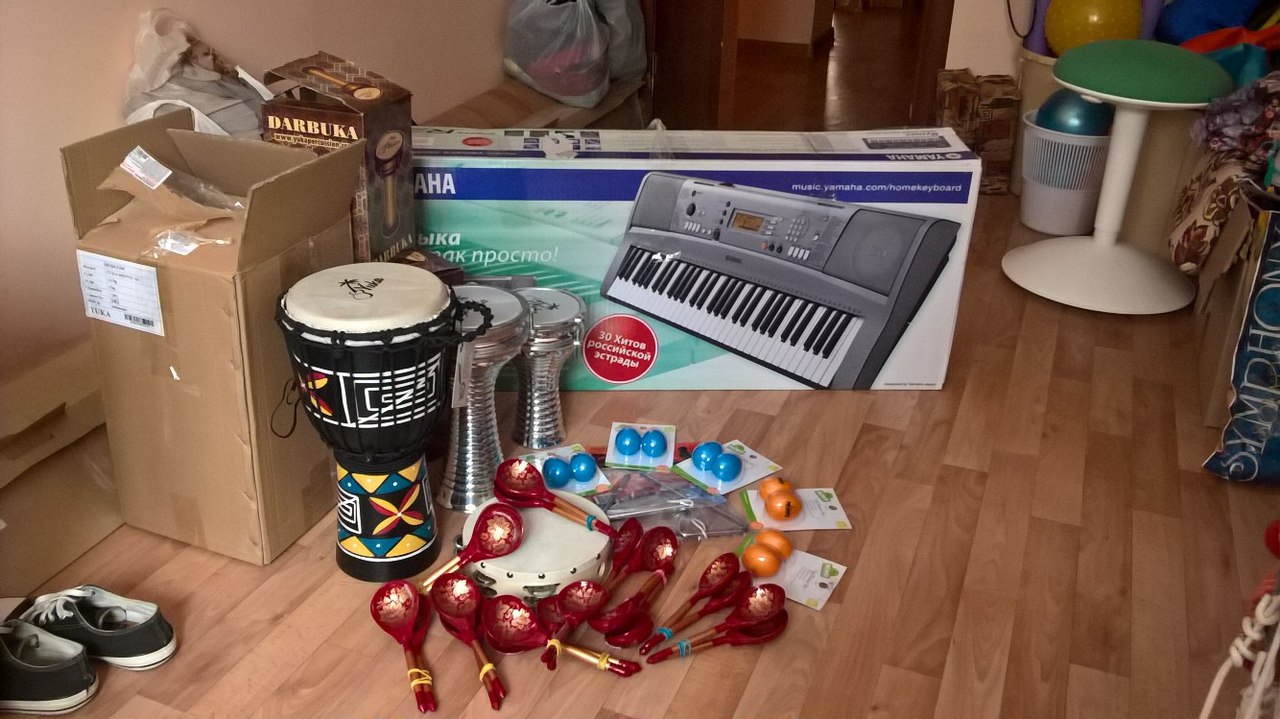 В этом месяце мы закупили все необходимое для работы учебных групп, из того, что было предусмотрено проектом инклюзивной театральной студии. Музыкальные инструменты (кстати, нам удалось даже взять немного больше, чем мы рассчитывали, благодаря тому, что компания “МузТорг” предоставила нам скидку! Большое спасибо!), музыкальное оборудование (муз.центр и портативная колонка) для занятий. Мы используем музыку не только на занятиях хореографией, но так же и декоративно-прикладном искусстве. Тихая классическая музыка очень благотворно влияет на состояние ребят.