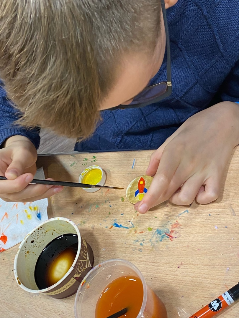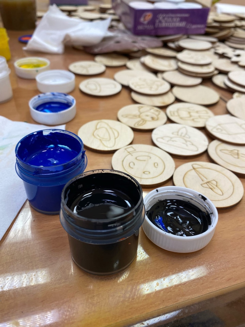 Продолжилась работа мастерской «PrоДелки». В этом месяце ребята наделали много значков, подставок под горячее и шкатулочек. Они сами (под руководством мастера, конечно) раскрашивали, шлифовали и покрывали изделия. Получилось здорово!
