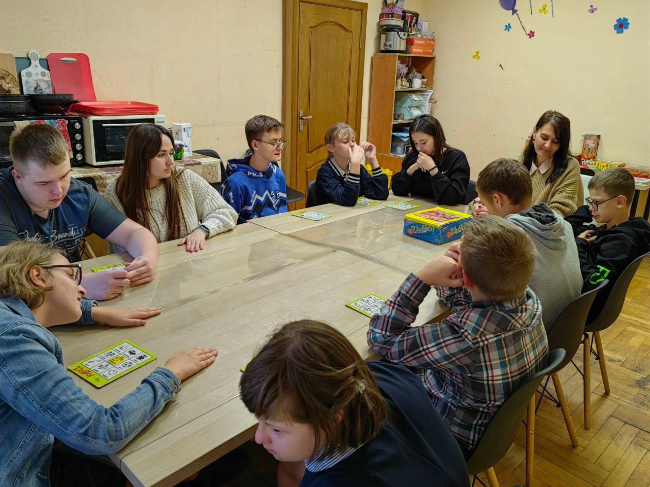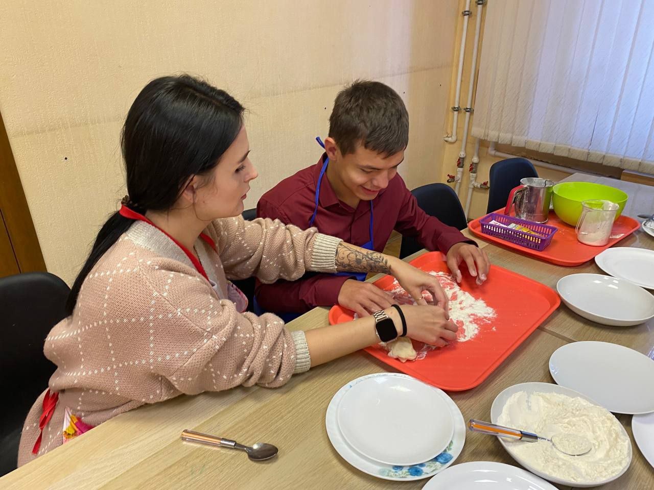 Продолжаются занятия в центре социально-бытовой и трудовой адаптации «ProНавыки». В сентябре ребята мастерили закладки для книг, знакомились с понятием «полезная занятость», смотрели об этом видео и обсуждали просмотренный материал, прибирали клумбу во дворе, готовили ее к зимовке, закрепляли навыки понимания времени и ориентирования по часам, играли в дворовые и дидактические настольные игры, традиционно вместе чаевничали и общались. Готовили овощной салат и нагеттсы, вкусные пышки и пиццу на кулинарной мастерской. Делали новые сувениры и изделия в сувенирке и шили крутые грушки на занятиях в швейной мастерской. А еще на выходных играли в настолки, были на мастер-классе по изготовлению фарфоровых солдатиков и военных брелоков и ходили в кино на всеми любимых Леди Баг и Супер-кота. В общем, все при деле 🙂